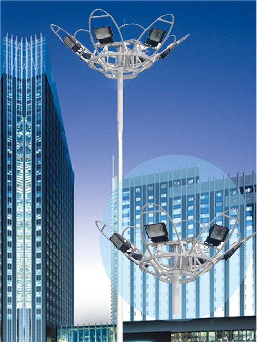 簡介—— 高桿燈多指15米以上,以鋼制燈柱、組合式燈盤以及大功率照明燈構建而成的大型照明裝置,有升降式和非升降式兩種。它由燈頭、內部燈具電氣、桿體及基礎部分組成。高桿燈的使用范圍很廣,可應用在需要大面積照明的場所,例如城市廣場、車站、碼頭、機場、貨場、公路、體育場、立交橋等。高桿燈造型美觀,具有很強的裝飾性,照明面積大,照明效果