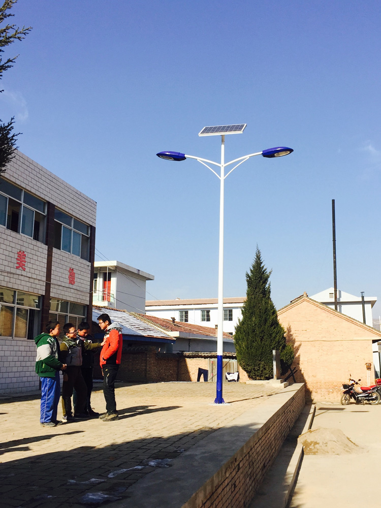 簡(jiǎn)介—— 甘肅省平?jīng)鍪袑W(xué)校路燈工程,采購(gòu)的是我蘭光照明單板雙頭太陽(yáng)能路燈,甘肅的冬季天黑的比較早,為了給校園操場(chǎng)提供照明路燈,安裝節(jié)能型的太陽(yáng)能路燈,在學(xué)校的操場(chǎng)和道路上安裝,給同學(xué)們提供夜間照明。